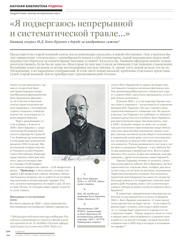 "Я подвергаюсь непрерывной и систематической травле..." Бывший генерал М.Д. Бонч-Бруевич в борьбе за квадратные сажени