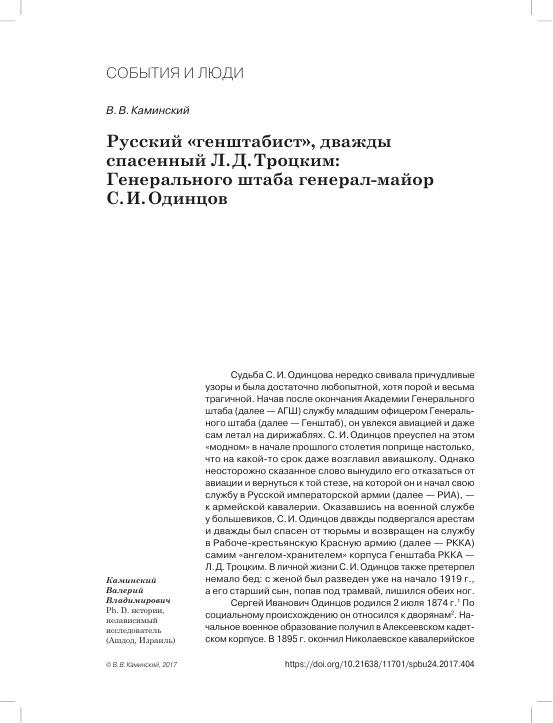 Русский «генштабист», дважды спасенный Л.Д.Троцким: Генерального штаба генерал-майор С.И.Одинцов