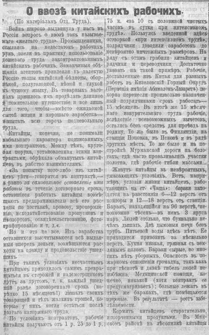 О ввозе китайских рабочих. Июнь 1917 г.