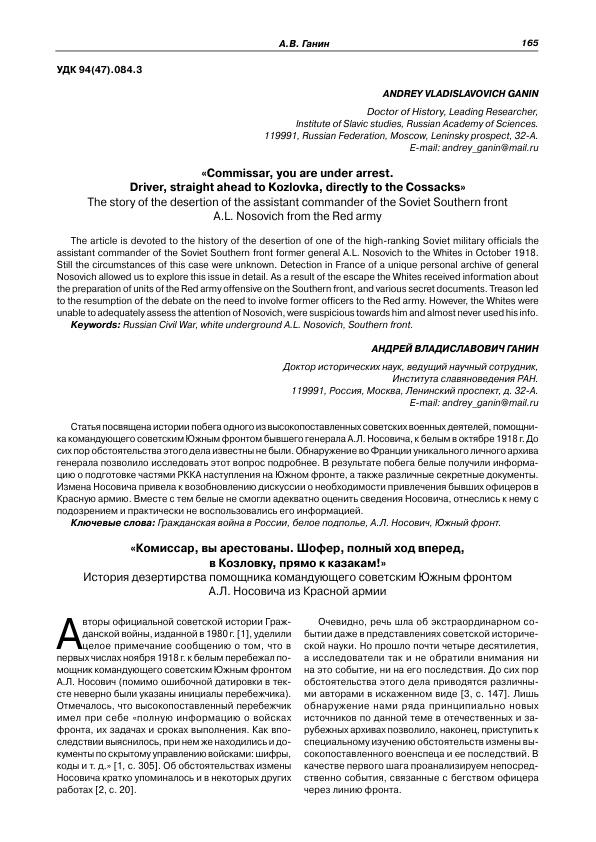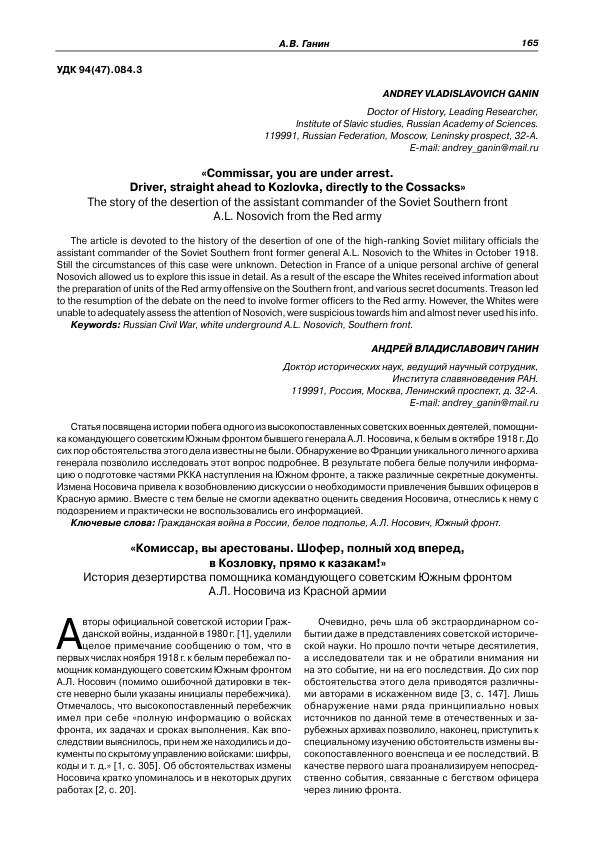 «Комиссар, вы арестованы. Шофер, полный ход вперед, в Козловку, прямо к казакам!» История дезертирства помощника командующего советским Южным фронтом А.Л. Носовича из Красной армии
