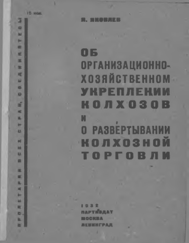 Об организационно-хозяйственном укреплении колхозов и развертывании колхозной торговли. 1932 г.