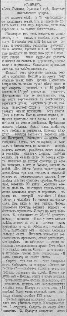 Кошмар. (Убийства при дележе земли в деревне). 1917 г.