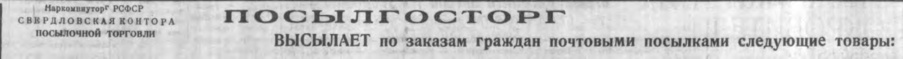 Ассортимент и цены Свердловского посылторга. 1936 г.