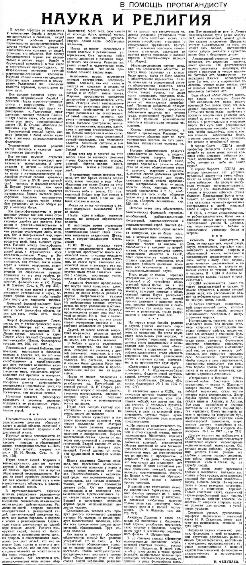 Наука и религия. 1950 г.