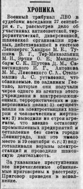 Приговор Военного Трибунала ЛВО по делу о диверсионной организации правых в системе Ленэнерго. 27 сентября 1937 г.