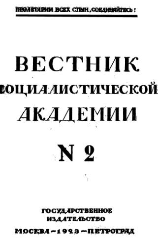 Вестник коммунистической академии. 1923. No 2