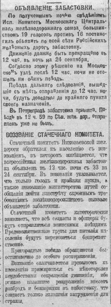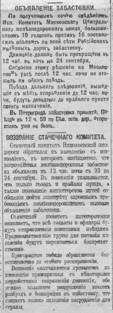 Забастовка железнодорожников. Сентябрь 17 г.