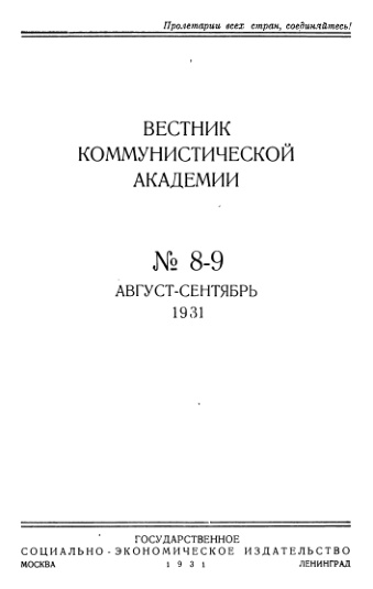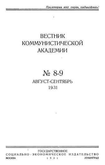 Вестник коммунистической академии. 1931. No 8-9