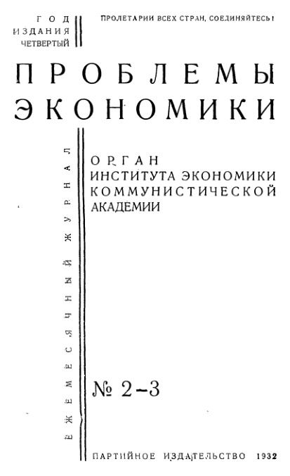 Проблемы экономики. № 2-3 1932
