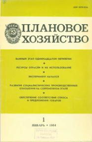 Плановое хозяйство. Ежемесячный журнал Госплана СССР. №№ 1-12, 1984 год