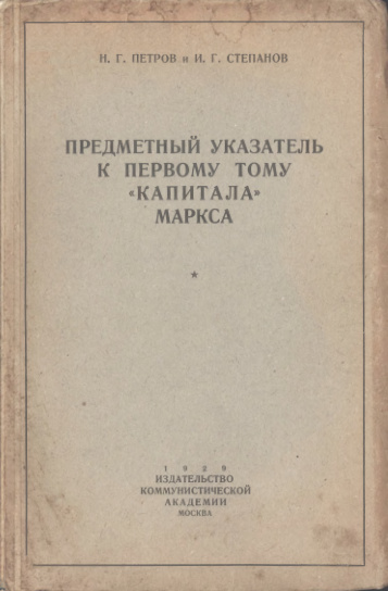 Предметный указатель к первому тому Капитала Маркса. 1929г
