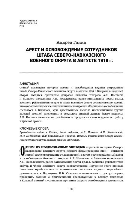 Арест и освобождение сотрудников штаба Северо-Кавказского военного округа в августе 1918 г.
