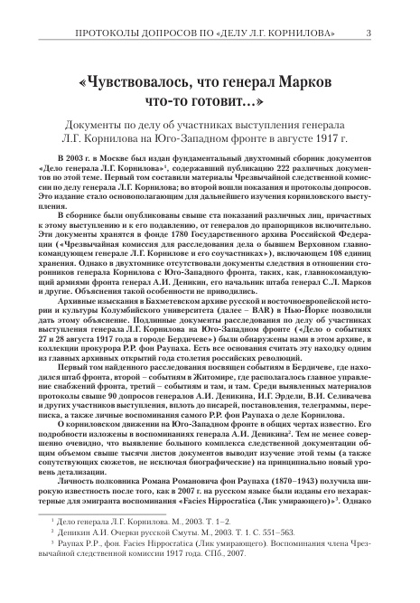 "Чувствовалось, что генерал Марков что-то готовит..." Документы по делу об участниках выступления генерала Л.Г. Корнилова на Юго-Западном фронте в августе 1917 г. / публ. А.В. Ганина