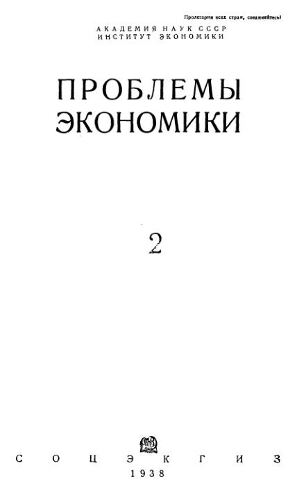 Проблемы экономики. №2 1938
