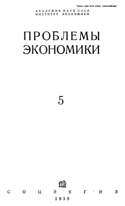 Проблемы экономики. №5 1939