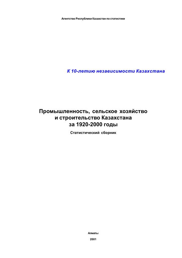 Агентство Республики Казахстан по Статистике. Алматы, 2001