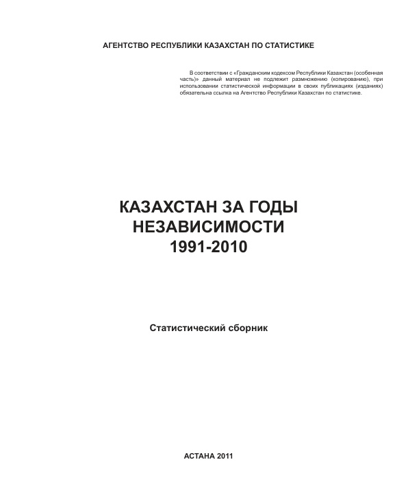 Агентство Республики Казахстан по Статистике. Астана, 2011