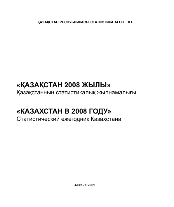 Агентство Республики Казахстан по Статистике. Астана, 2009