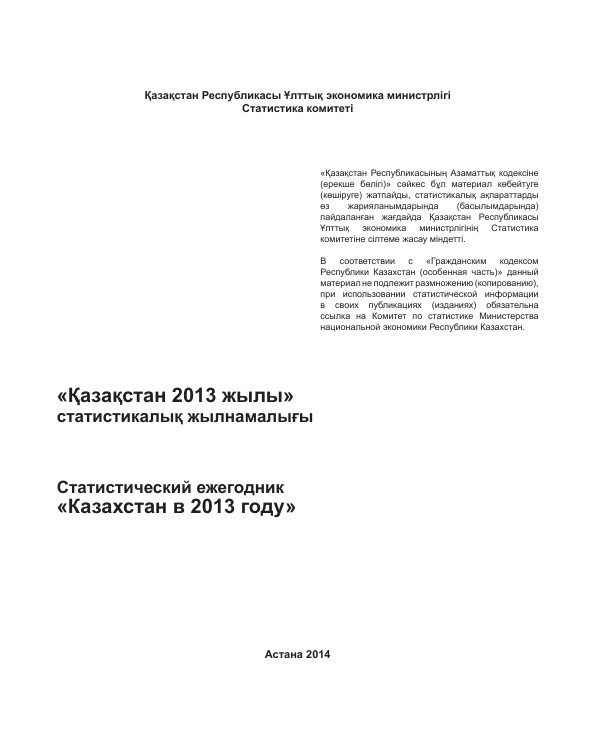 Агентство Республики Казахстан по Статистике. Астана, 2014