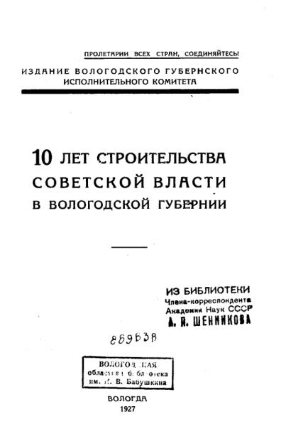 10 лет строительства советской власти в Вологодской губернии (1927)