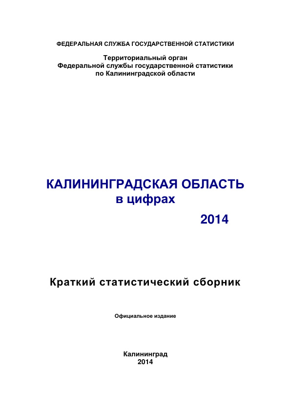 Калининградская область в цифрах. Краткий статистический сборник