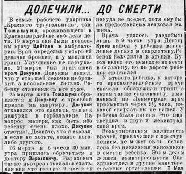 Долечили ребенка до смерти. Апрель 35 г.