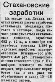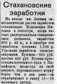 Заработки стахановцев. Ноябрь-декабрь 35 г.