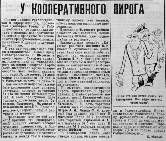 У кооперативного пирога (Засоренность кооперации чуждыми элементами). Апрель 35 г.