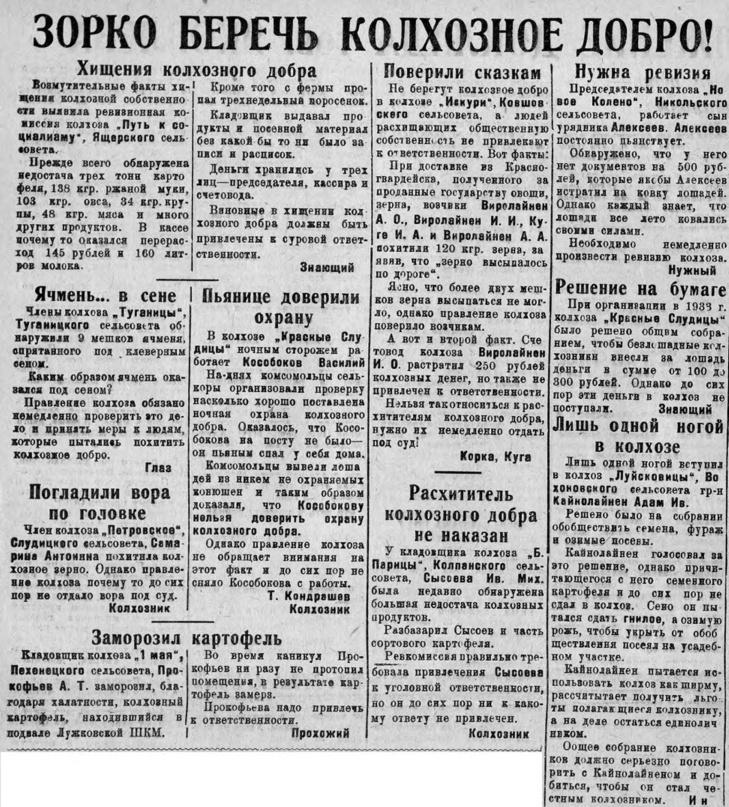 Зорко беречь колхозное добро (непорядки в колхозах). Февраль-апрель 35 г.