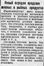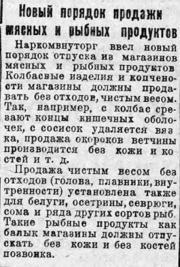Порядок продажи мясных и рыбных продуктов. Ноябрь 35 г.