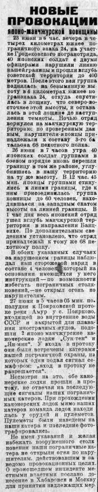 Новые провокации японо-манчжурской военщины. Июнь 35 г.