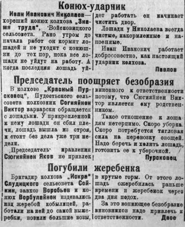 Разное отношение к конскому поголовью. Июнь 35 г.