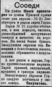Соседи. Сравнение двух торговых ларьков. Ноябрь 35 г.