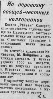 На перевозку овощей - честных колхозников. Сентябрь 35 г.
