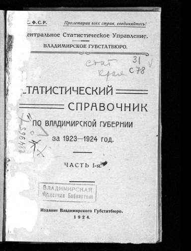 Статистический справочник по Владимирской губернии за 1923-1924 год. Часть 1