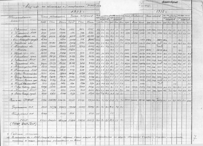- Справочные таблицы ЦУНХУ Госплана СССР о естественном движении населения по месяцам, республикам, краям и областям в динамике за 1932-1934 гг.
