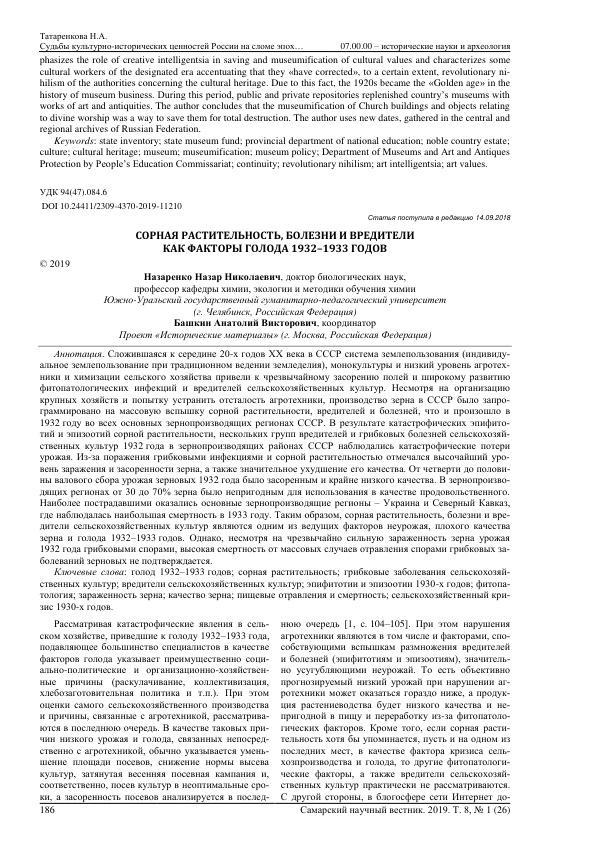 Сорная растительность, болезни и вредители как факторы голода 1932-1933 годов.