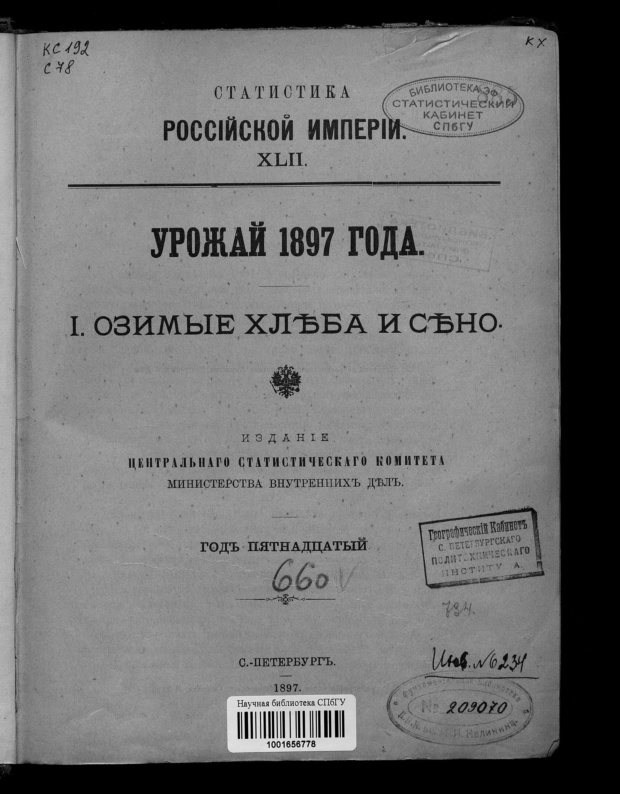 Издание Центрального Статистического Комитета Министерства внутренних дел. Санкт-Петербург. 1897