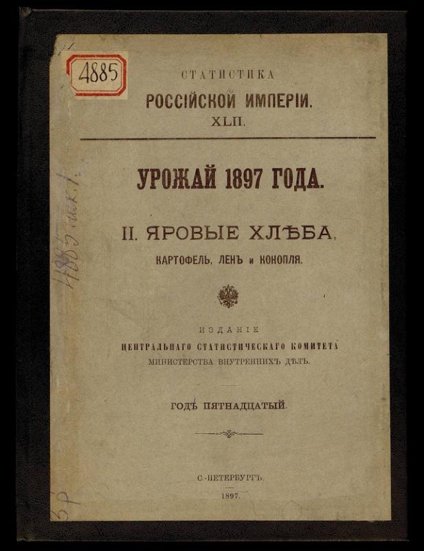 Урожай 1897 года. II. Яровые хлеба, картофель, лён и конопля (год пятнадцатый)