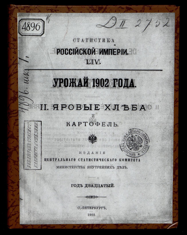 Издание Центрального Статистического Комитета Министерства внутренних дел. Санкт-Петербург. 1903