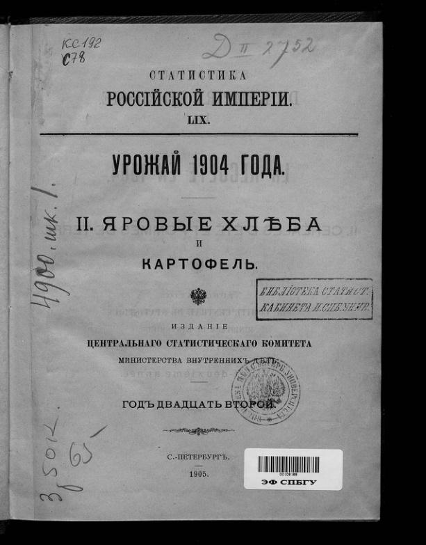 Издание Центрального Статистического Комитета Министерства внутренних дел. Санкт-Петербург. 1905