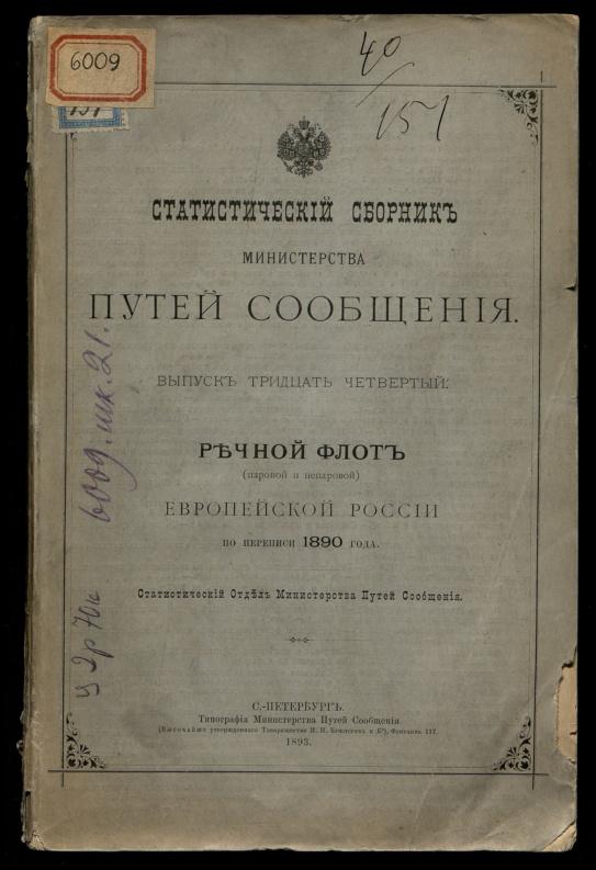 Статистический сборник Министерства путей сообщения. Выпуск 34. Речной флот (паровой и непаровой) Европейской России по переписи 1890 года