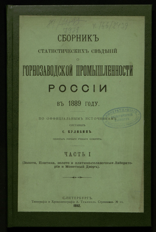 Сборник статистических сведений о горнозаводской промышленности России в 1889 году