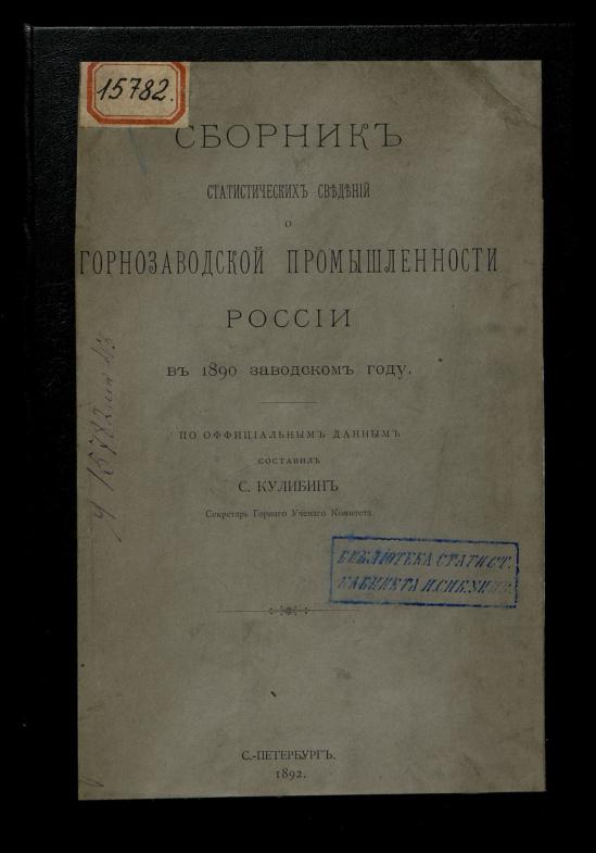 Сборник статистических сведений о горнозаводской промышленности России в 1890 году