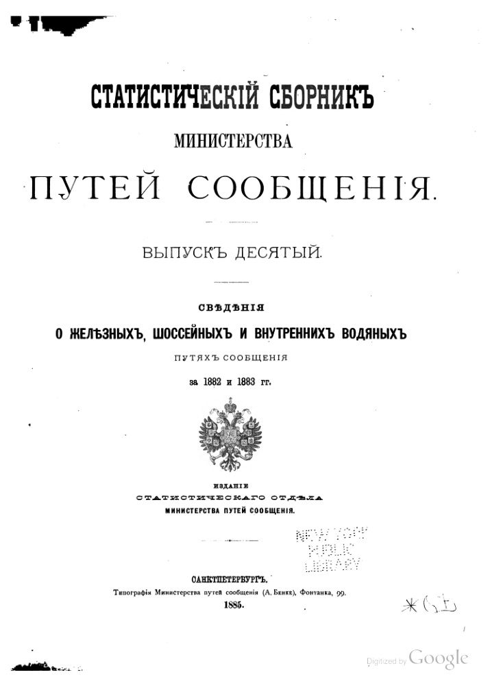 Издание Статистического Отдела Министерства Путей Сообщения. С.-Петербург, 1885