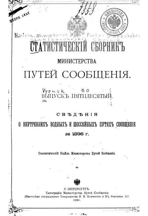Статистический сборник Министерства путей сообщения. Выпуск 50. Сведения о внутренних водных и шоссейных путях сообщения за 1896 г.