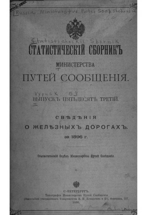 Статистический сборник Министерства путей сообщения. Выпуск 53. Сведения о железных дорогах за 1896 г.