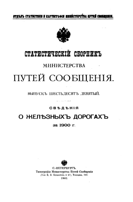 Отдел Статистики и Картографии Министерства Путей Сообщения. С.-Петербург, 1902