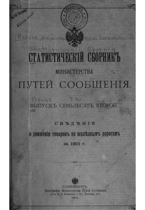 Отдел Статистики и Картографии Министерства Путей Сообщения. С.-Петербург, 1903