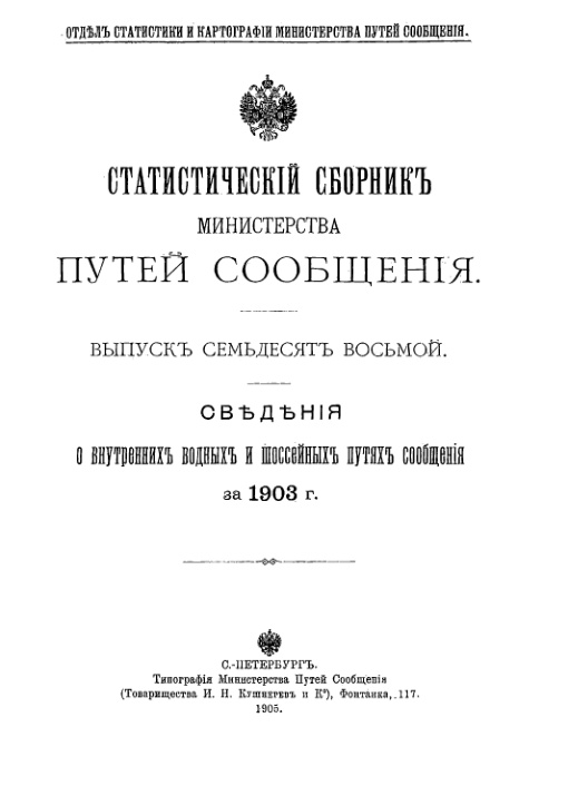 Отдел Статистики и Картографии Министерства Путей Сообщения. С.-Петербург, 1905